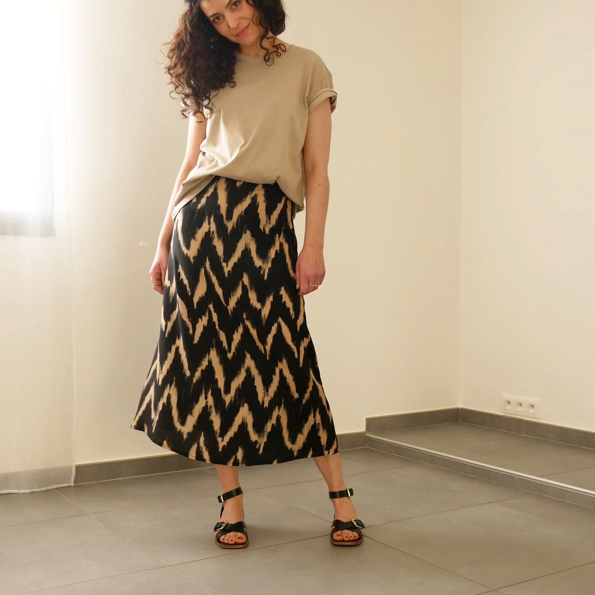 En choisissant le patron de la jupe Plume Midi, vous optez pour un modèle conçu avec soin, pensé pour vous guider à chaque étape et vous permettre de réaliser une pièce unique et élégante, 100 % fait main. Chaque détail a été travaillé pour allier clarté des explications, précision du patron et plaisir de la couture.